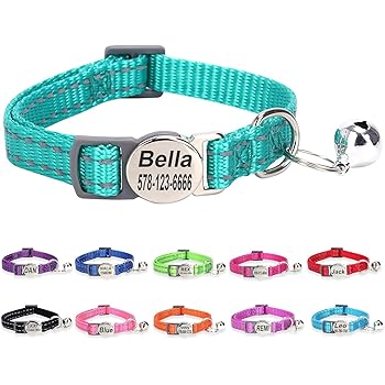 Individuelles geschnitztes Katzenhalsband mit Sicherheitsschnalle und ID-Etikett, verstellbares reflektierendes Nylon-Katzenhalsband mit Glöckchen, für Welpen und Kätzchen, Türkis